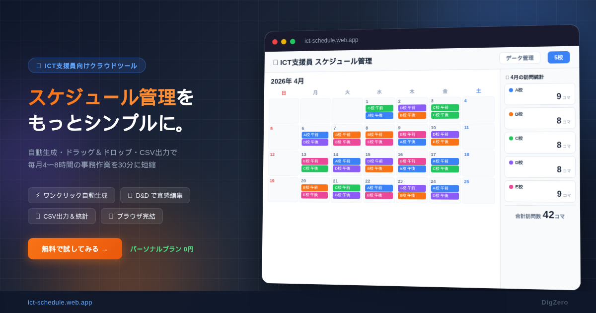 「Googleカレンダー+Excel報告書」の二重管理から解放。サーバー不要・ブラウザだけで動作する、ICT支援員専用のスケジュール管理ツール。